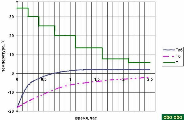 графики температуры среди, поверхности брикета и внутри него;