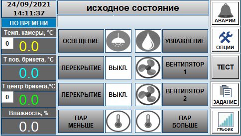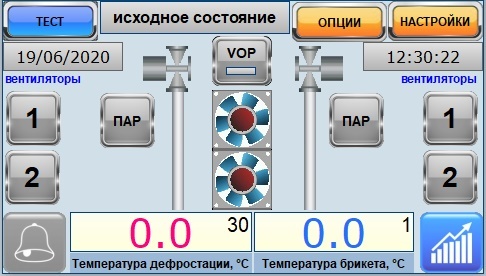 динамическая мнемосхема процесса дефростации с псевдокнопками позволяющими, при необходимости, осуществлять ручное вмешательство в управление технологическим процессом;